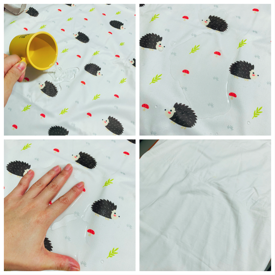 有圖有真相...我用左一杯水測試一下防水墊...